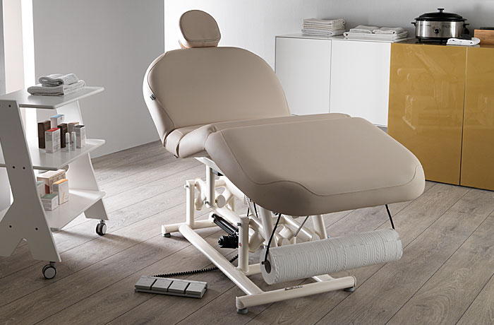 Многофункциональная кушетка "PORTOFINO EVO" - для массажа и SPA процедур для лица и тела, способна обеспечить максимальный комфорт, а также совмещает в себе практичность и оптимизацию рабочего пространства. Кушетка оснащена тремя электромоторами, с помощью которых регулируются высота, наклон спинки и сидения (ножной части), регулировки осуществляются за счет ножного пульта управления. Каркас массажной кушетки выполнен в виде шкафа с выдвижным ящиком, для хранения аксессуаров, инструментов, косметических продуктов. Новый матрас EVO обеспечивает исключительный комфорт благодаря особой форме, отличающейся регулируемыми встроенными подлокотниками с изменяемым наклоном и встроенным подголовником с отверстием для лица с заглушкой, подголовник также регулируется по углу наклона. Значительно облегчает массажисту выполнение различных видов массажа. В частности, позволяет занять более удобное лежачее положение, поскольку подлокотники помогают полностью расслабить мышцы спины и шеи, благодаря чему повышается эффективность массажа. Матрас EVO — это многофункциональный эргономичный матрас для выполнения процедур по уходу за лицом и телом.